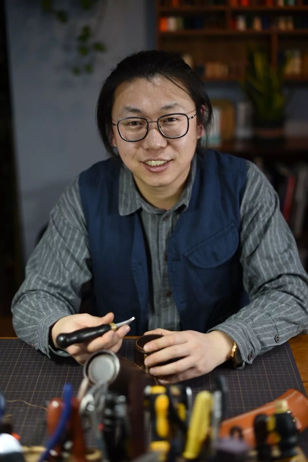2013年一个偶然的机会接触到手工皮具,于2015年成立汐迟工坊手工皮具工作室,2016年学习皮雕技艺。